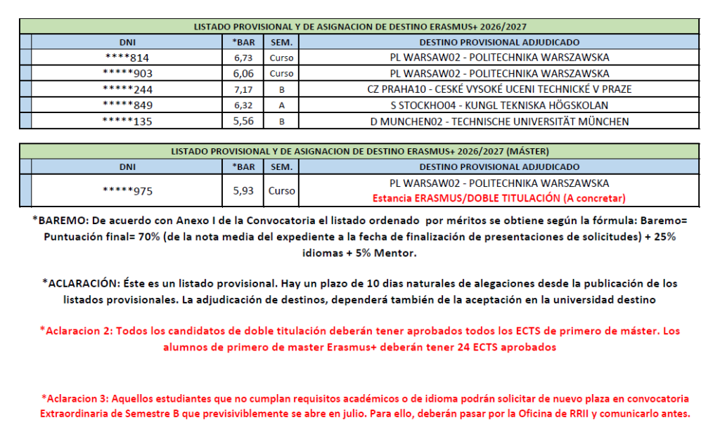 Recordad que existe un plazo de 10 días naturales para la presentación de alegaciones desde la fecha de publicación y adjudicación de destinos. Asimismo, la adjudicación definitiva dependerá de la aceptación formal por parte de la universidad de destino.
