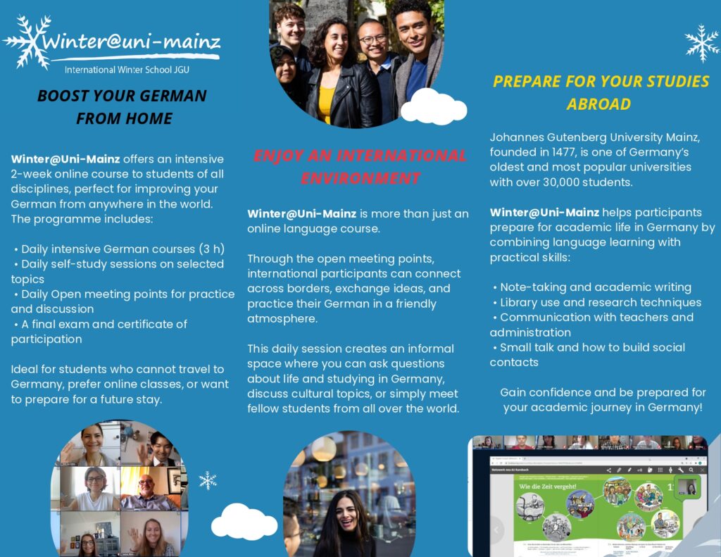 Winter@Uni-Mainz ofrece un curso intensivo de dos semanas para estudiantes de todas las disciplinas — una oportunidad ideal para mejorar su alemán desde cualquier parte del mundo.
