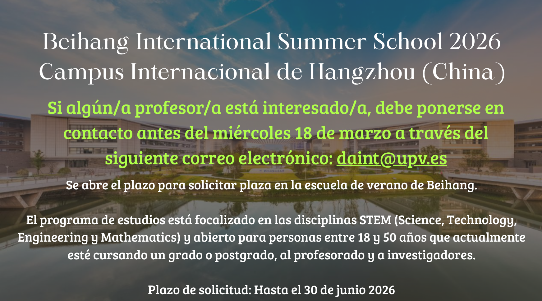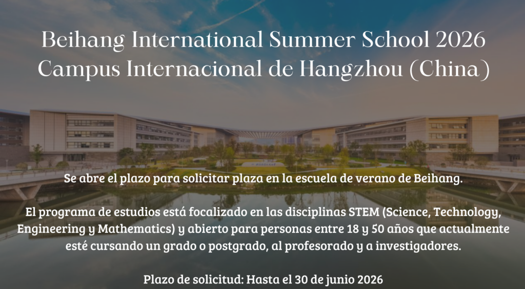 Les recordamos que se abre el plazo para solicitar plaza en la Escuela de Verano de Beihang – Campus Internacional de Hangzhou (China).