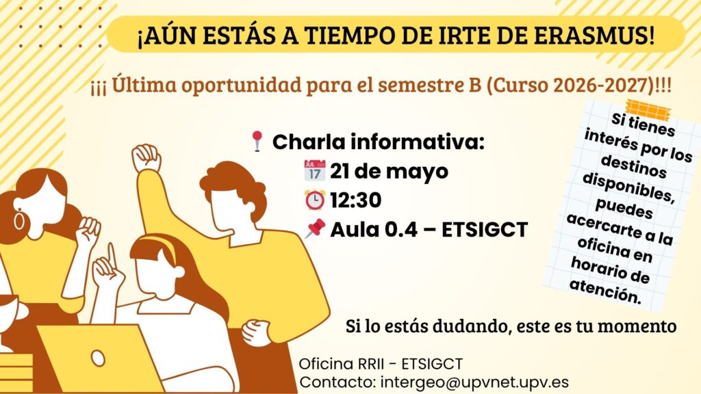 Y para quienes no pudisteis inscribiros a tiempo, ¡hay una segunda oportunidad! En la convocatoria extraordinaria para el semestre B, que publicaremos próximamente, también organizaremos una charla informativa. Estad atentos!